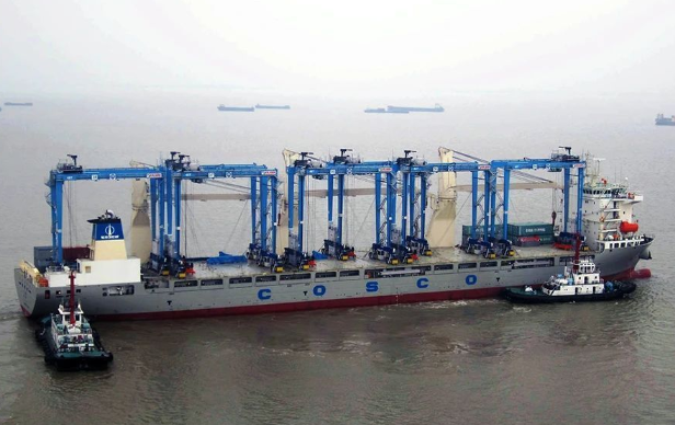 在此次运输中,中远海运特运首创了3台RTG在舱盖上成“品”字形交错同时行走的方法,并创新“过桥”技术,实现重吊船上RTG移位方式的新尝试。