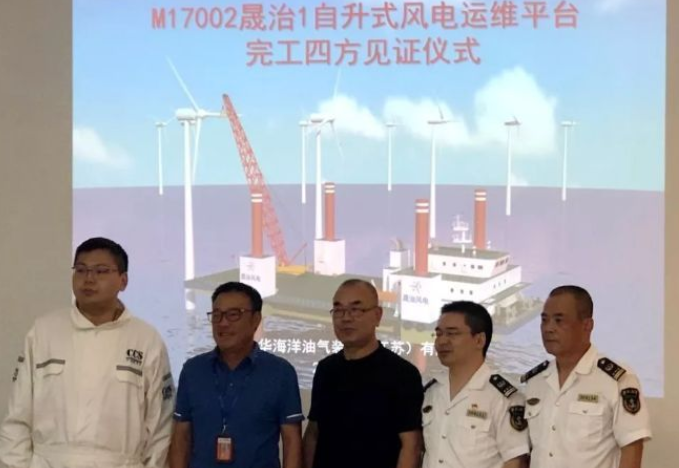 宏华海洋为晟治风电科技(上海)有限公司建造的“晟治1号”风电运维平台举行完工四方见证签字仪式。